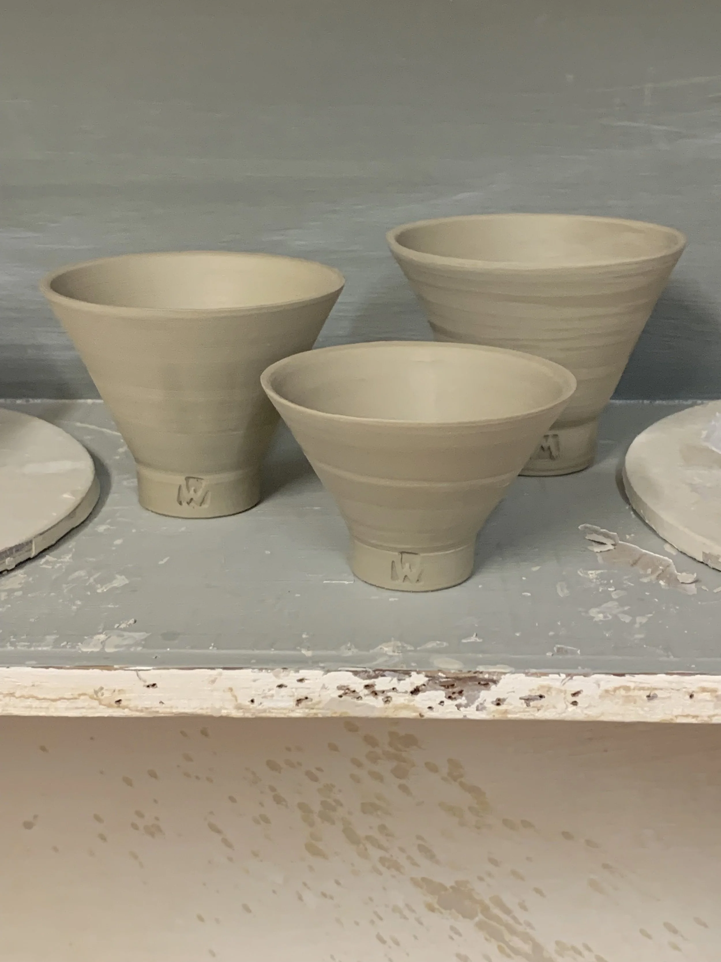 Using the thrown pieces from day 1 we will learn the art of turning, removing any unwanted imperfections, and refining the shape and surface of the forms. Particular focus will be given to the rim and shaping of the outer foot. Finally, we will learn how to turn footrings inside the base.