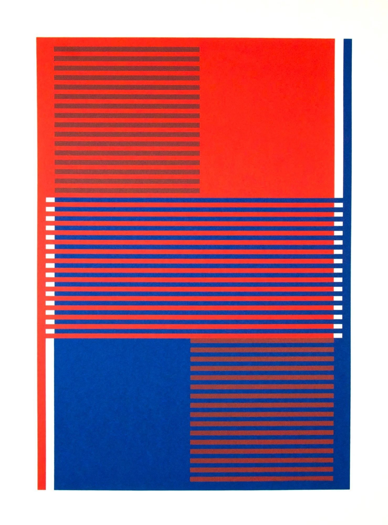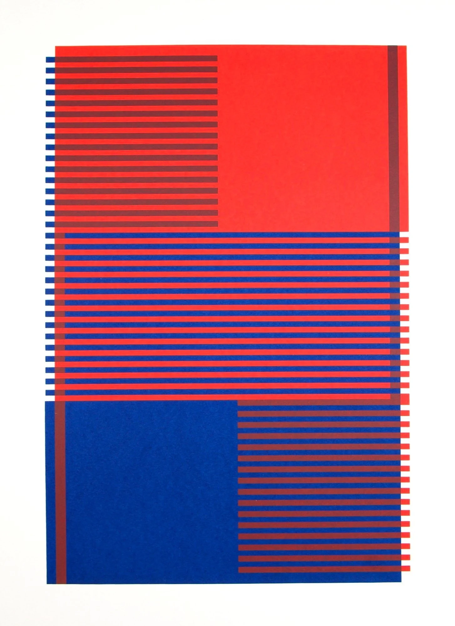 For years I have felt that making works through the medium of screenprint would compliment my ceramics; being able to apply pigment to paper would enable me to explore colour phenomena more quickly than the lengthier process of ceramics. Even after rigorous testing ceramics can be unpredictable as colours often change during firing, so the flat colour and direct nature of screenprinting was very appealing.