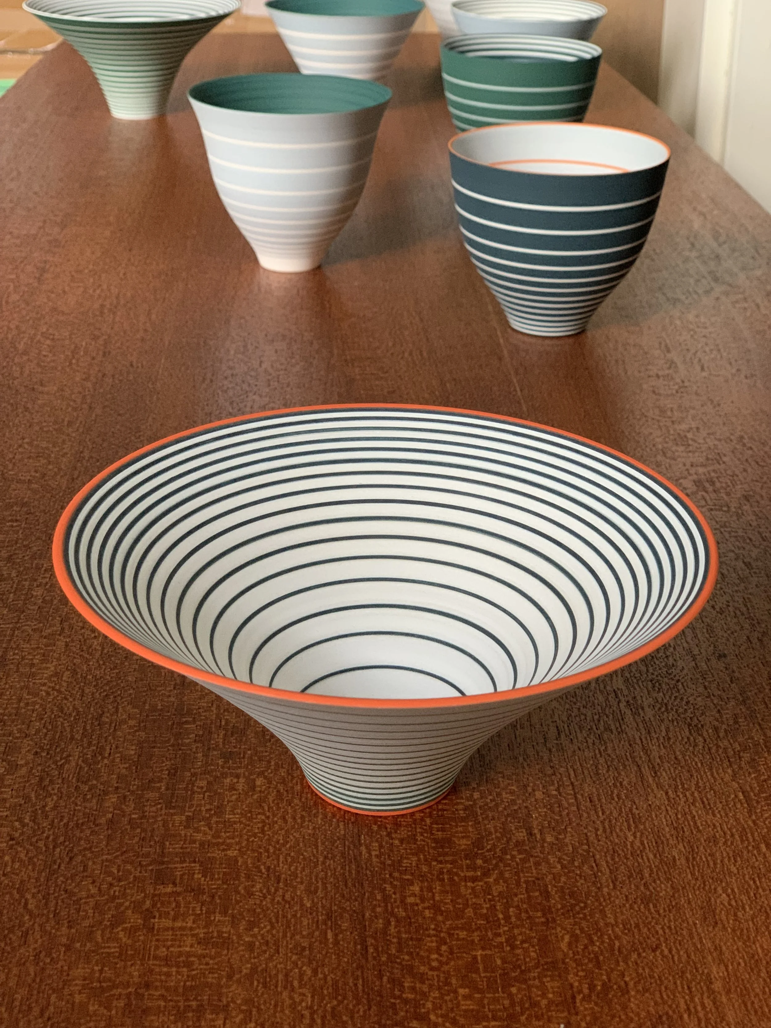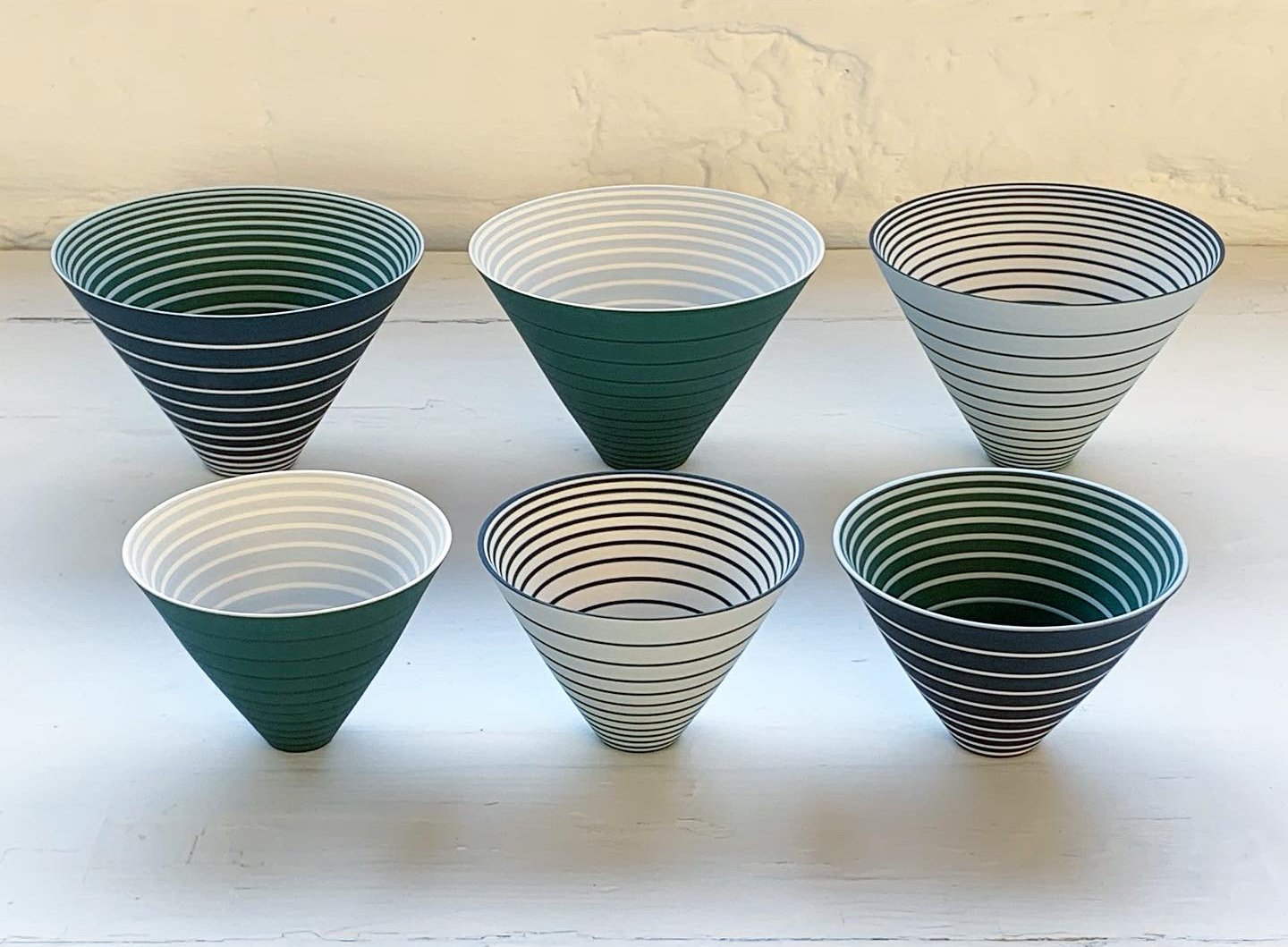 My Winter palette is derived from walking through a winter landscape. The distilled arrangements of cool blues and darks greens, often interspersed with orange, aim to reflect the quiet and calming nature of scenes at this time of year.